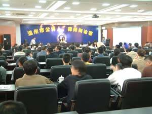 10月27日,为了加强检察系统与律师行业沟通,推动双方业务交流,选拔出参加“浙江省律师最佳辩手大赛”选手,市律师协会联合市人民检察院举办了“温州市公诉人、律师辩论赛”。本次比赛评委由市人大、市政协、市检察院及律师协会各部门人员组成,市大人张林副主任、市检察院谢向理副检察长、市司法局林锡春副局长、市律师协会童平宇会长到场观看了比赛。