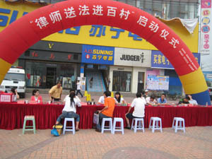 5月29 日,“律师送法进百村”活动在柳市镇举行了启动仪式,正式拉开活动序幕。启动仪式分三步同时进行:一是举行启动仪式及法律知识讲座。二是举行现场法律咨询,分别为村民提供法律宣传、律师解疑、法律援助现场受理岗、法律知识有奖竞答等活动,活动当天共接待村民5000余人次。三是向结对的村赠送法律书籍,直接送法进村居,并将印有结对律师的联系方式、办公地址及法律服务范围的联系卡发放到村委会,以方便广大群众寻求法律帮助。