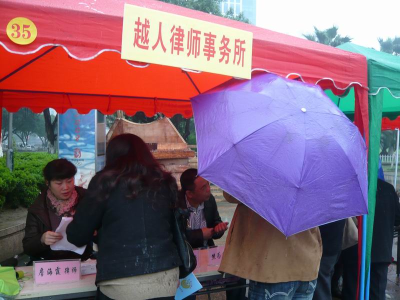 越人所律师冒雨参加3.15广场法律咨询活动