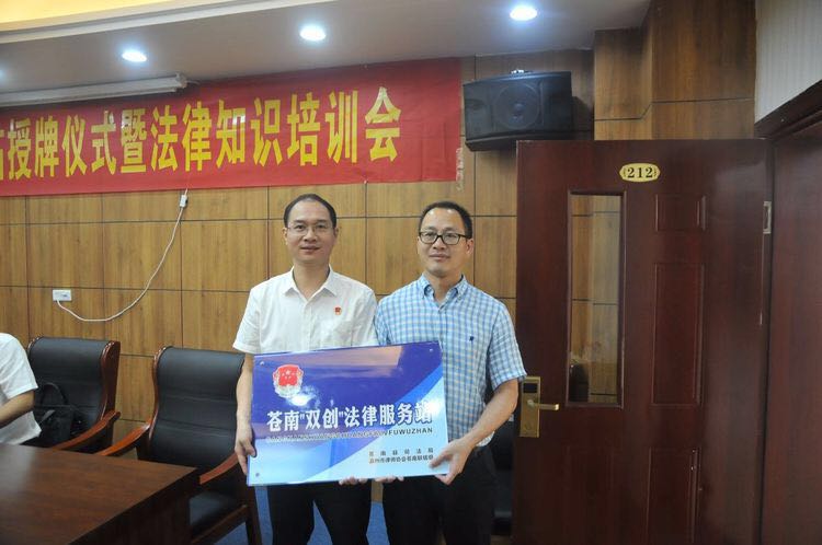 会上,县司法局局长林光锋同志向“双创”法律服务站法律专家代表授牌,正式启动法律服务站。“双创”法律服务站位于苍南县灵溪镇科技企业孵化器园区内,是县司法局和县科技局联合打造的创新创业企业法律服务站。“双创”法律服务站的设立旨在发挥司法行政职能优势,为入驻科技企业孵化器园区提供一站式、便民化、实用化的法律服务。县司法局选派10名热心公益服务的骨干律师组成“双创”法律专家服务团,定期在服务站坐班,通过专家预约、“坐堂问诊”、法律体检、法律宣讲与培训等形式,精准帮扶企业解决法律困惑、降低法律风险,为企业稳健发展提供坚强的法律保障。此次启动仪式标志着苍南县惠企便民法律服务科技企业工作取得重要突破。