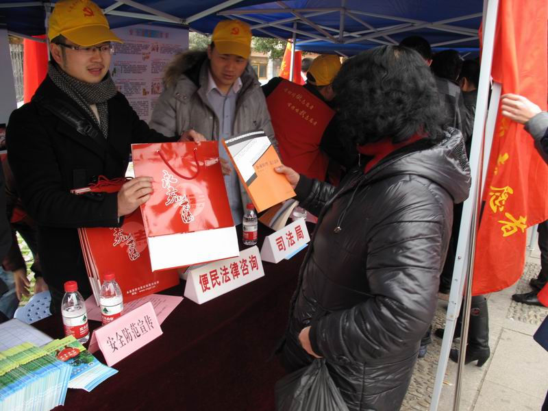 3月5日――浙江省志愿者活动日,在县人民大会堂广场,县司法局带领律师、公证员、基层法律服务工作者队伍参与永嘉县志愿者协会组织开展的党员志愿者法制宣传、法律咨询等便民活动。