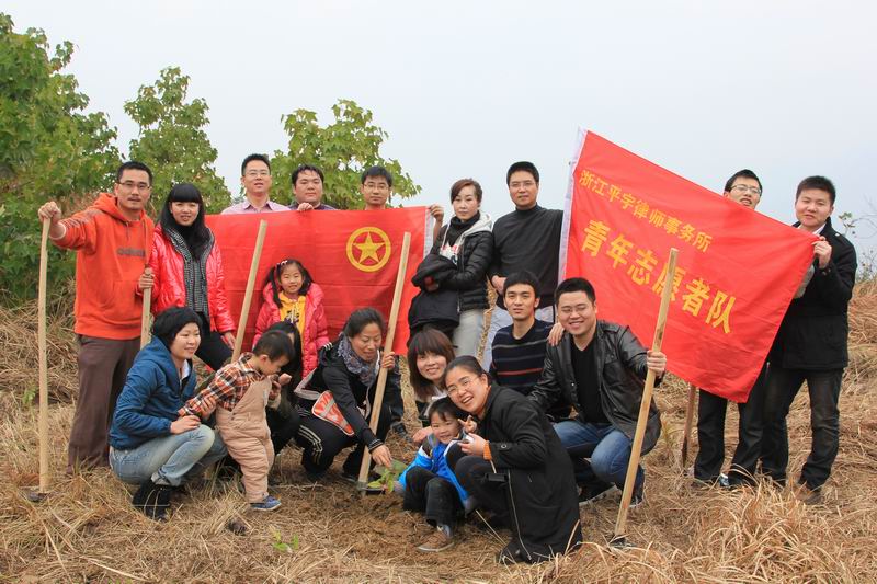 3月12日,平宇所副主任卓予拉、洪建政带领青年律师共20余人参与植树节义工活动,在河庄村卧旗山上栽种了40余株树苗,与其它24家企事业单位的义工队伍共同打造温州首个“慈善义工林”。