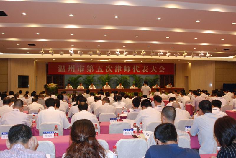 6月19日至20日,温州市第五次律师代表大会在市人民大会堂、金瓯宾馆召开。大会听取并审议通过了《温州市律师协会第四届理事会工作报告》、《温州市律师协会会费收支情况报告》、《关于〈温州市律师协会章程〉的修改说明》等报告。选举产生了由55名理事组成的市律协第五届理事会。周光律师当选为市律协第五届理事会会长,叶连友、冯蒋华、杨康乐、池方景、项军权、金克明和姚建明等7名律师当选副会长。在本次代表大会期间,五届一次常务理事会还作出聘任詹振灼、瞿韶军为温州市律师协会本届名誉会长、甘细平为协会秘书长的决定。省厅李会光副厅长、省律协章靖忠会长、市委朱贤良副书记、市人大黄德康副主任、省厅律管处徐晓波副处长、省律协余柏盛副秘书长、市政法委林建军副书记、市司法局徐昌桂局长和詹振灼副局长等领导同志出席了会议。
