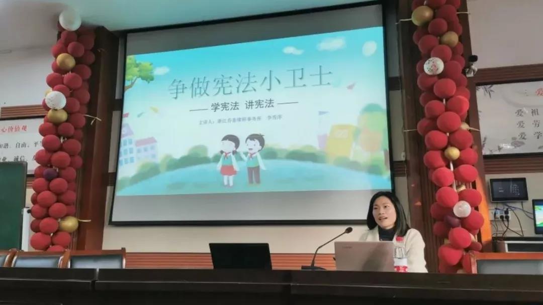 为了营造良好的法治氛围,增强学生知法、懂法、守法的法律意识。浙江乔泰律师事务所李秀萍律师受邀为乐清市北白象镇第二小学学生开展宪法宣传讲座。