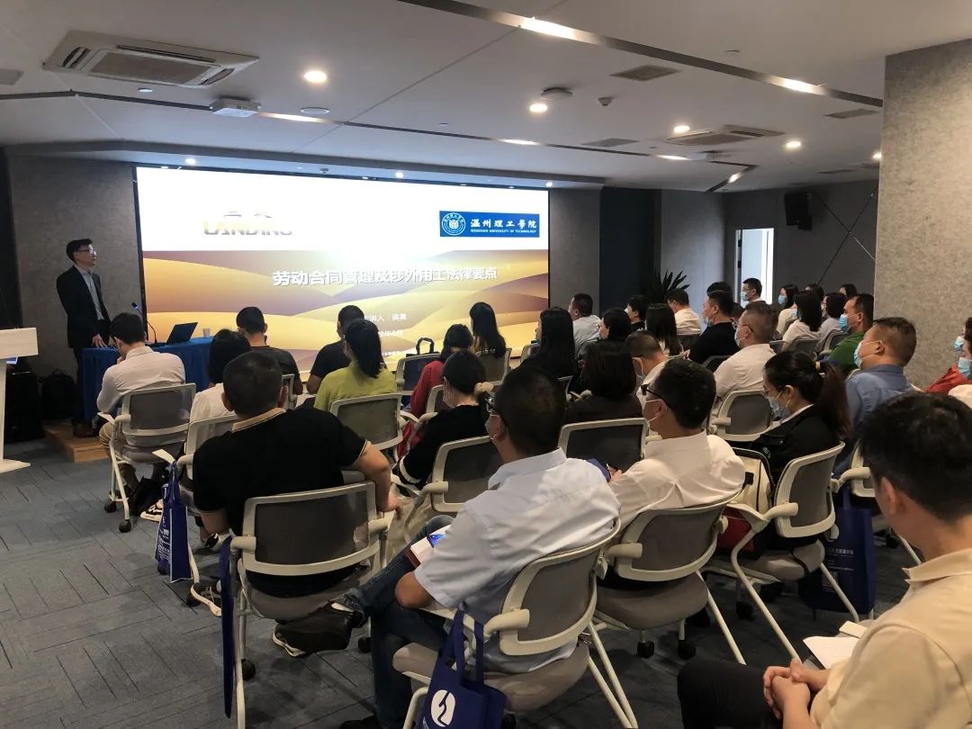 2022年6月10日,兰迪(温州)所吴昊律师受邀参加温州经济技术开发区人力资源局、行政事务服务中心联合举办的劳动法律培训和“510+计划”政策宣讲活动,为经济技术开发区50多家企业人事主管作“劳动合同管理及涉外用工法律要点”专题讲座。