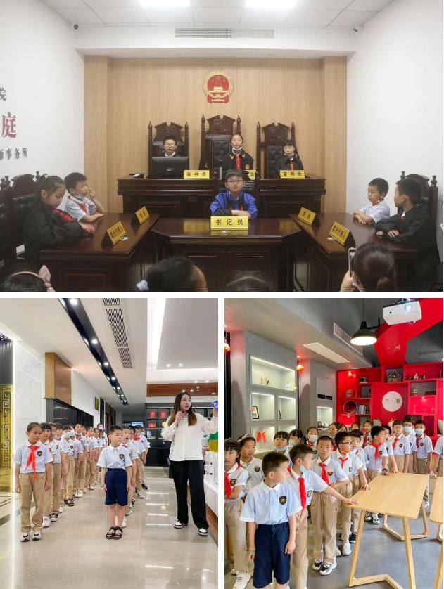 实习律师张若婧在普法活动前先带领孩子们参观了律所的办公环境和五个兰文化空间,并介绍了兰迪律所的文化和发展理念。孩子们还参观了律所的模拟法庭,进行职业体验,通过扮演审判长、书记员、代理人等法庭角色,更加直观立体地体会法庭氛围,切身感受到法律的庄重威严。