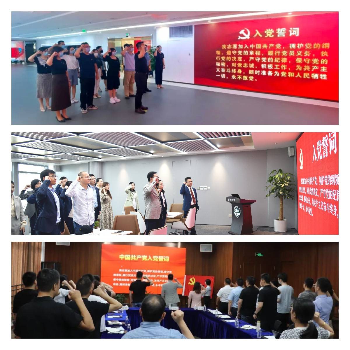 律师所党支部组织党员重温入党誓词,党员律师们面朝鲜红的党旗,高举右拳,庄严宣誓。通过铿锵有力的誓言,表达大家对党的无限忠诚、热爱和听党话、跟党走的坚定决心。