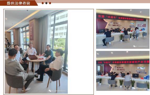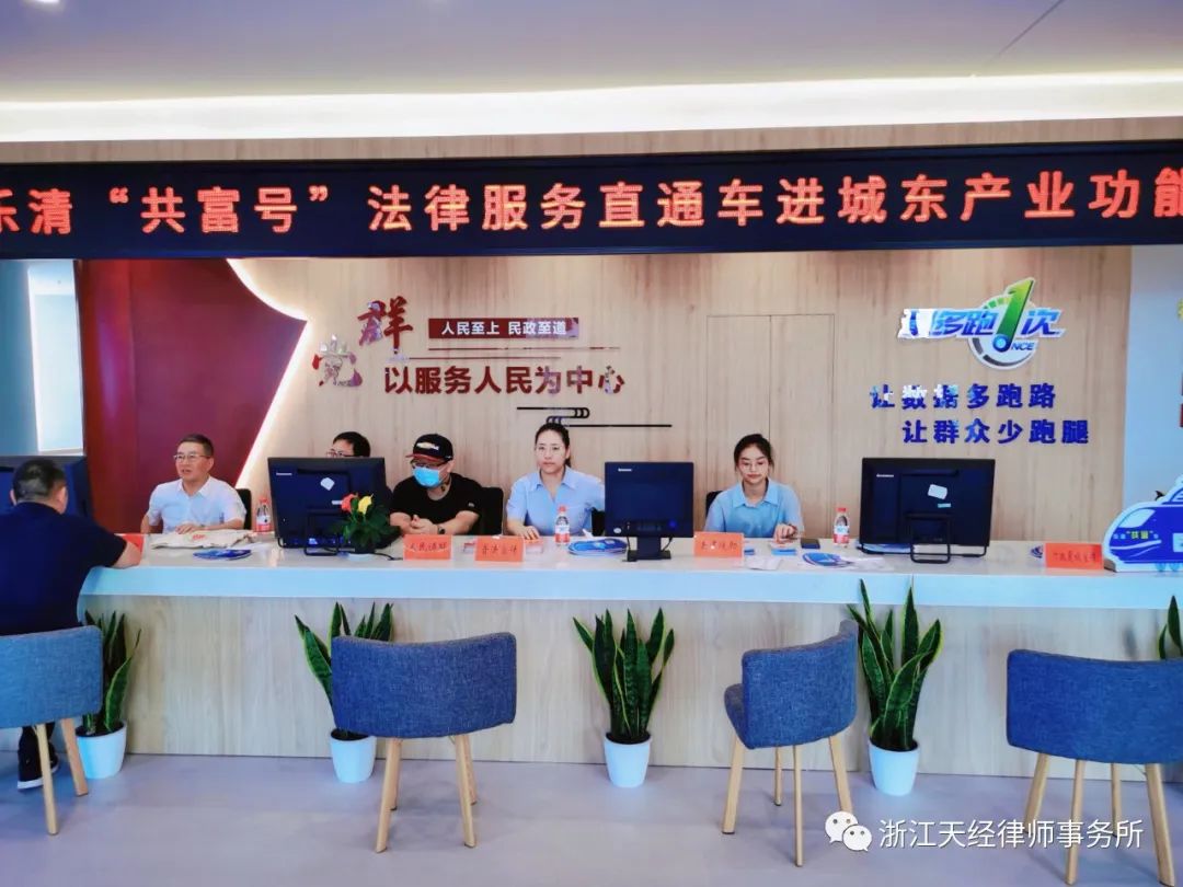 为了深入贯彻习近平法治思想,进一步打造法治化营商环境,经乐清市司法局、乐清市城东街道司法所牵头,由天经所律师担任城东街道产业功能区六十多家企业公益法律顾问。2022年6月30日,乐清市司法局、城东街道、浙江天经律师事务所联合举办“乐清‘共富号’法律服务直通车进城东产业功能区”活动。