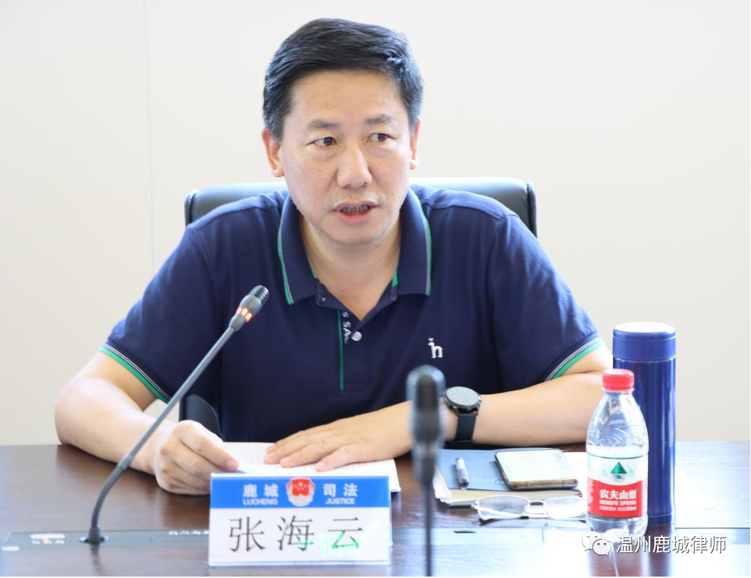 鹿城区司法局局长张海云介绍了鹿城律师行业的整体情况、特色亮点以及《若干规定》专项治理活动开展情况。