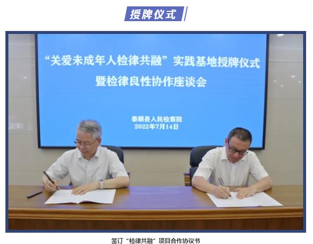7月14日下午,温州律协与泰顺县人民检察院共同举行“关爱未成年人检律共融”实践基地授牌仪式暨检律良性协作座谈会。泰顺县检察院党组书记、检察长林思可,市律协会长叶连友,市司法局律师工作处处长、市律协秘书长陈先豪,泰顺县儿童友好城市建设专班代表陶筱艽出席会议并讲话。