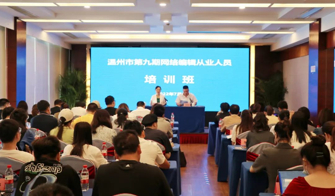 2022年7月13日,温州市第九期网络编辑从业人员培训班顺利举办,来自温州日报报业集团、温州广电传媒集团、各县级融媒体中心和全市商业网站、论坛、自媒体的60余名网络编辑从业人员参加培训。