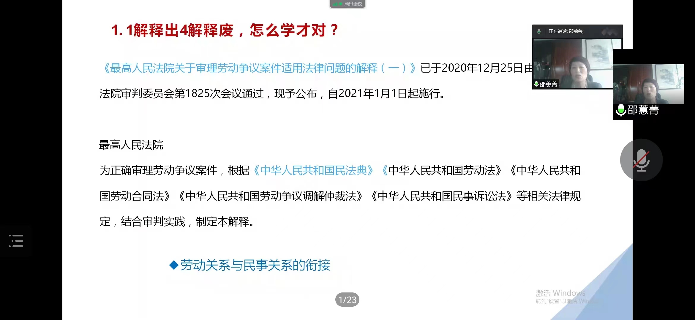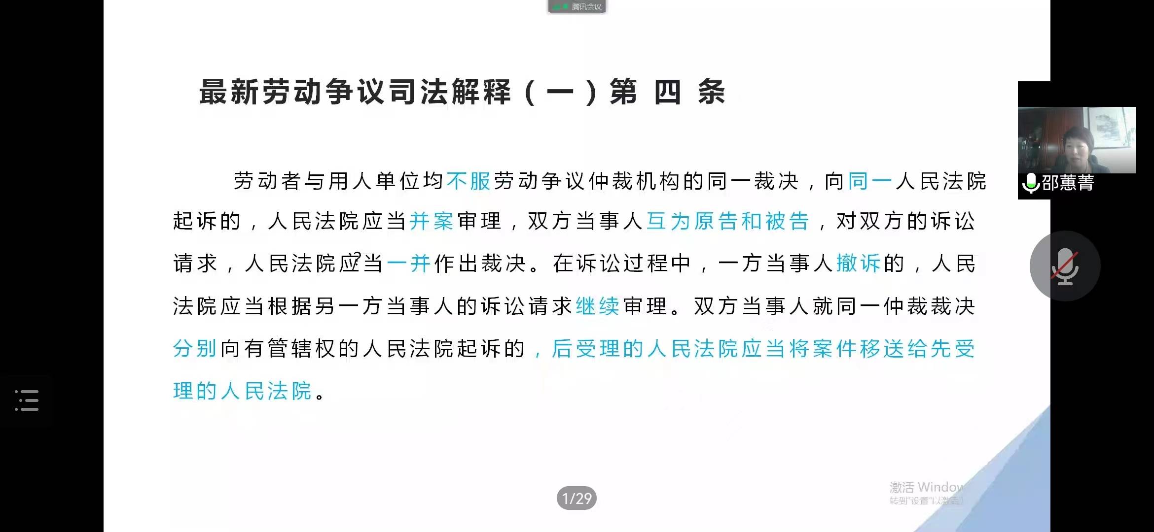 2022年8月6日,市律协劳动和社会保障专业委员会举办“最高院指导案例剖析及劳动争议司法解释解读”主题讲座。因疫情影响,本次讲座采用在线方式进行。由浙江劳动律师事务所主任、浙江法学会劳动与社会保障法学研究会副会长邵蕙菁律师主讲,全市250余名律师参加培训。
