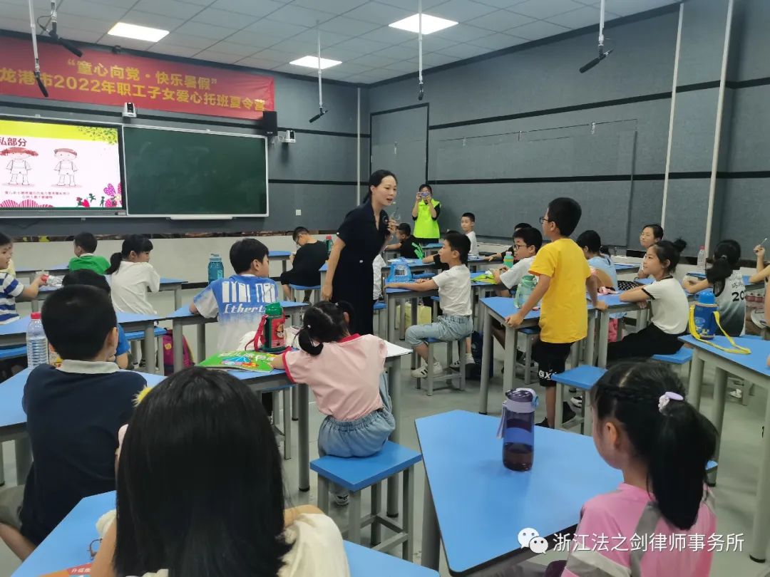 8月18日,由龙港市委宣传统战部、龙港市委政法委(市司法局)主办,龙港市新时代文化实践中心、龙港市壹次心未成年人帮扶中心承办的“童心向党•快乐暑假”主题夏令营活动走进龙港市第五小学,本次活动特别邀请浙江法之剑律师事务所陈思思律师作为主讲嘉宾参与活动。