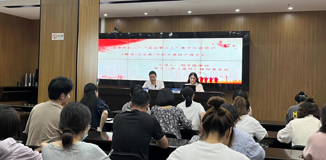 202296日,六和(温州)所胡东晓律师应鹿城区司法局邀请,为广化街道社区法律明白人”“法治带头人开展集中任前培训,培训主题是《解读〈民法典〉中的夫妻财产规定》。