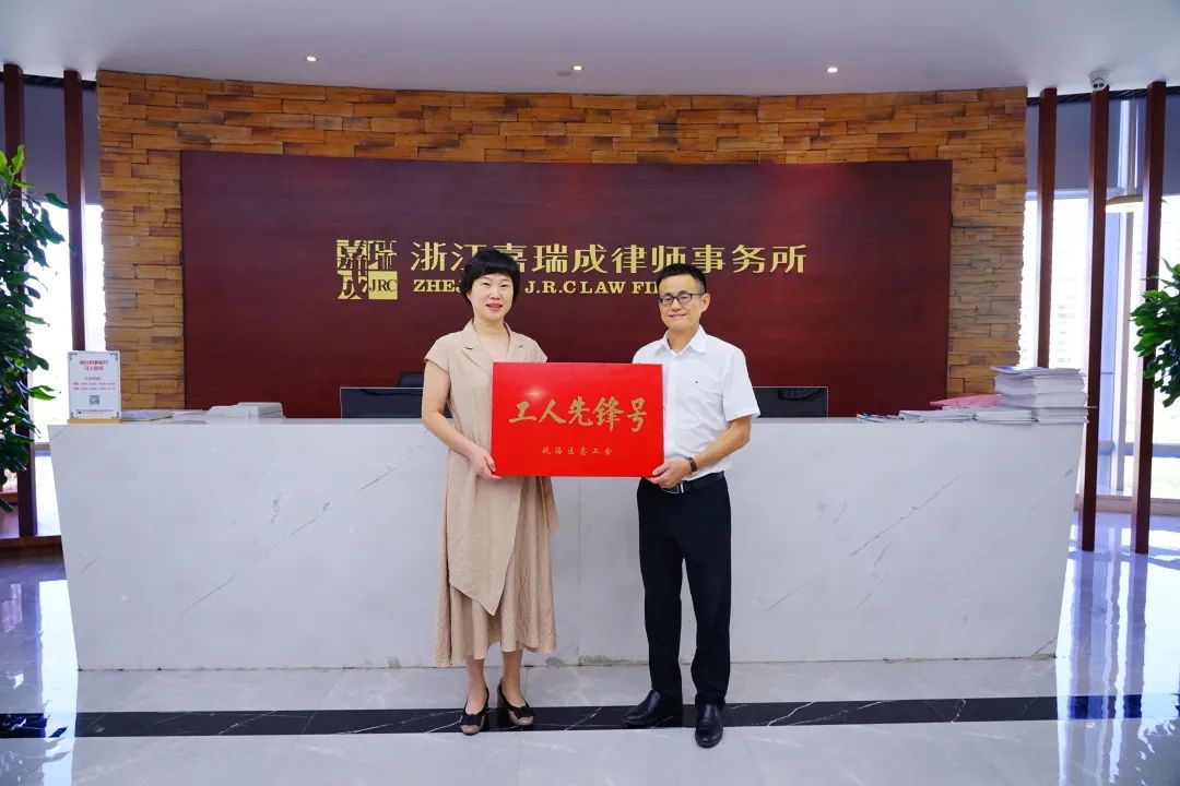 近日,浙江嘉瑞成律师事务所海霞婚姻工作室,被温州市瓯海区总工会授予“工人先锋号”称号,工会主席黄锡楚代表律所领取荣誉牌匾,并将其授予海霞婚姻工作室负责人詹海霞。