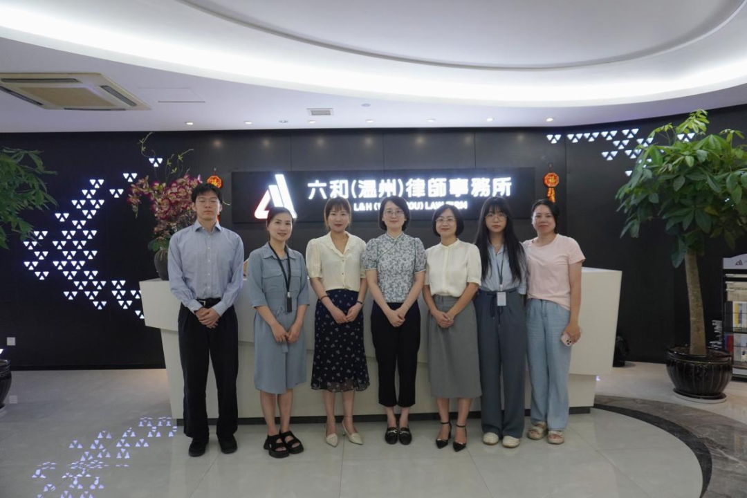 2022年9月27日上午,鹿城区妇联黄休休主席、阮春燕副主席一行来到浙江六和(温州)律师事务所,六和(温州)所副主任、区妇联副主席(兼)李雪品律师与姜旭萍律师陪同黄休休主席一行参观了办公场所、党建文化长廊等区域,并在律师所开展座谈。