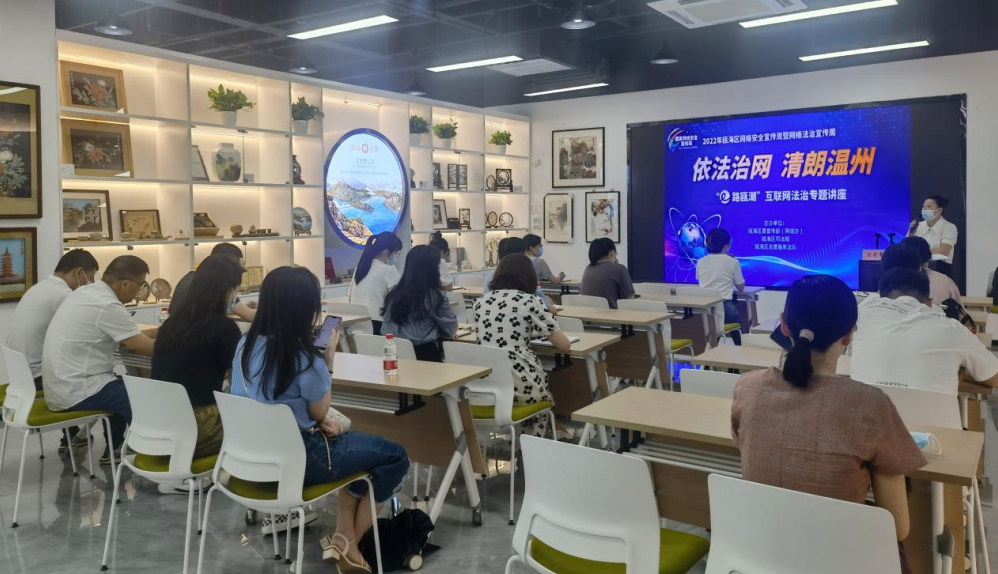 日前,瓯海区“E路瓯潮”互联网法治专题讲座在区网络普法基地顺利举办,活动邀请浙江嘉瑞成律所陈莉章律师,围绕网络安全、网络执法、个人信息保护等内容进行现场交流分享。本次讲座作为2022年瓯海区网络安全宣传周暨网络法治宣传周系列活动之一,由区委宣传部(网信办)、区司法局和区志愿服务总队主办,区依法治网专班成员单位、属地自媒体和网络志愿者代表参加。