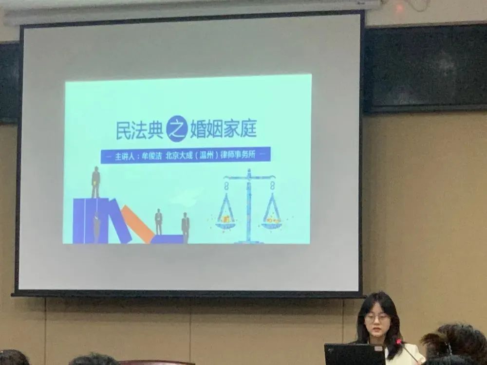 9月22、23、27日,北京大成(温州)律师事务所牟俊洁律师受鹿城区妇女联合会邀请分别前往广化街道、大南街道和五马街道,就《民法典》婚姻家庭编内容开展讲座。