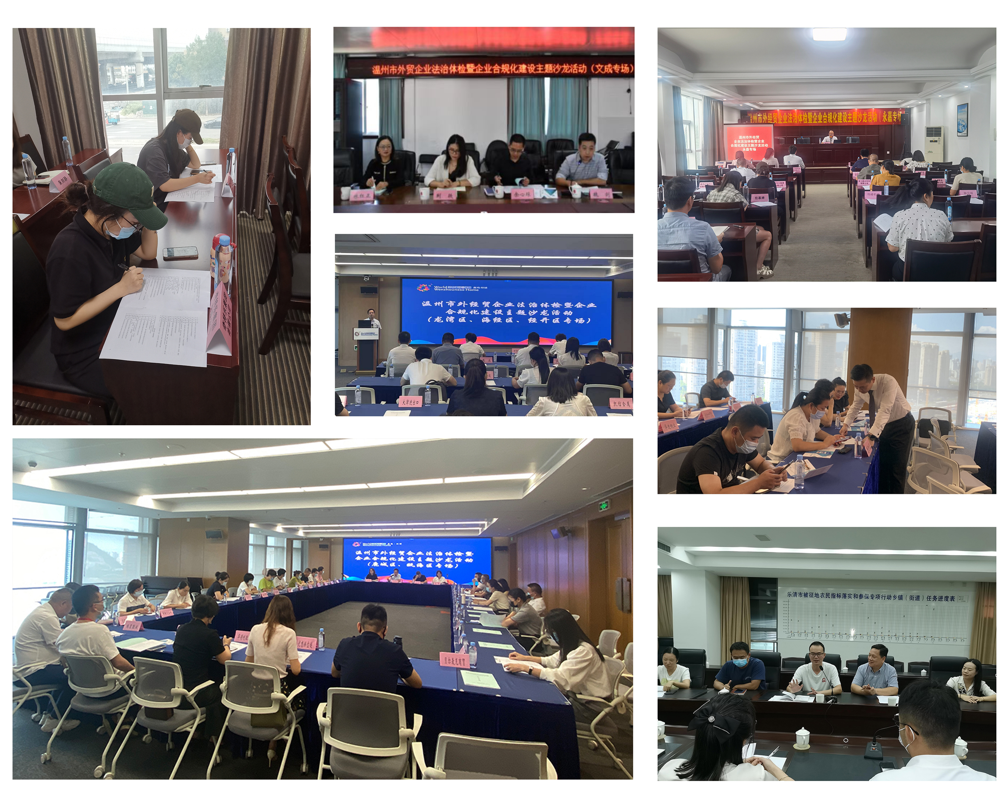 截止目前,已组织5期外经贸企业法治体检暨企业合规化建设主题沙龙活动,专家组分别在鹿城、龙湾、瓯海、乐清、永嘉、文成、瓯江口等地与外经贸企业开展互动交流,介绍法治体检的必要性,指导企业填写法治体检调查问卷,进行一对一咨询辅导,全面了解和精准把握企业合规化建设实际情况,并将法治体检报告反馈企业。