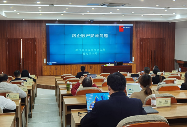 2022年11月26日,由青岛市律师协会破产重组专业委员会、青岛市破产管理人协会、青岛市法学会破产法研究会联合主办,青岛律师学院承办的青岛市破产领军人才实训营第二讲在对外经贸大学青岛研究院国际会议中心举办。嘉瑞成所破产与重组团队主要负责人孙万里律师受邀作为主讲嘉宾之一,在线上就《房企破产疑难问题》进行授课。