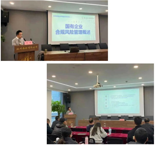 为积极响应国家合规政策的实施,全面加强市属国有企业法治建设,提升国有企业依法合规经营管理水平,增强企业防范化解重大风险能力。2022年12月6日下午,国资委普法讲师团走进温州面粉有限公司(以下简称“面粉公司”)开展主题为“国有企业合规风险管理” 的法治讲座,本次讲座由市国资系统普法讲师团成员、越人所高级合伙人、党支部书记刘毅律师主讲。