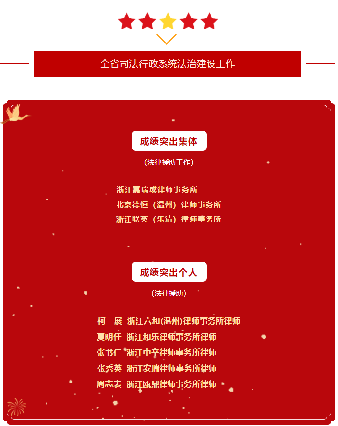 喜报!我市3家律所和5名律师分别获得全省司法行政系统法治建设工作成绩突出集体、个人