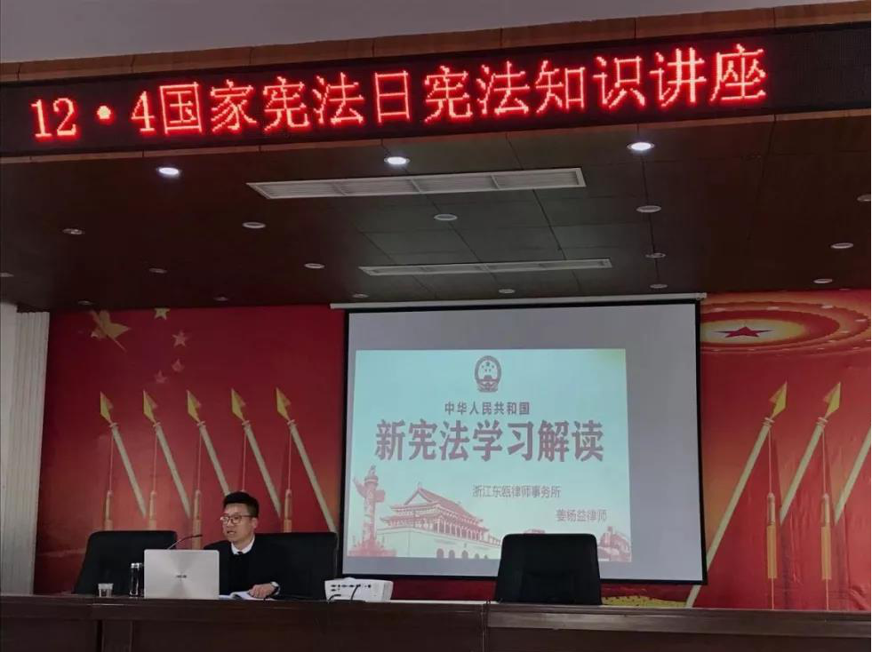 组织律师积极开展宪法日主题宣讲活动。海昌文成所律师为文成县第二实验小学师生作“弘扬宪法精神 树立宪法权威”宪法知识讲座;六和(温州)所律师为温州市第十九中学师生带去“弘扬法治精神 争做守法好学生”主题法治宣讲;泽商所律师“国家宪法日校园普法行”走进温大附小为同学们普及法律知识;瓯信所律师在温州市第三中学开展“青少年与宪法——弘扬宪法精神,争做普法少年”主题普法活动;时代商务所律师前往温州市轨道交通资产管理公司开展宪法日专题讲座;东瓯所党员律师受永中司法所邀请为辖区内服刑人员宣讲《宪法》课;光正大所律师参加温州大学瓯江学院法治文明校园普法教育月活动启动仪式并发表主旨演讲。泰辉所律师前往泰顺县三魁镇张宅村文化礼堂参加“12.4国家宪法日普法活动”;乐清市“普法亮眼 护航青春”校园公益活动走进5所中小学校,带去专题讲座助力弘扬宪法精神。