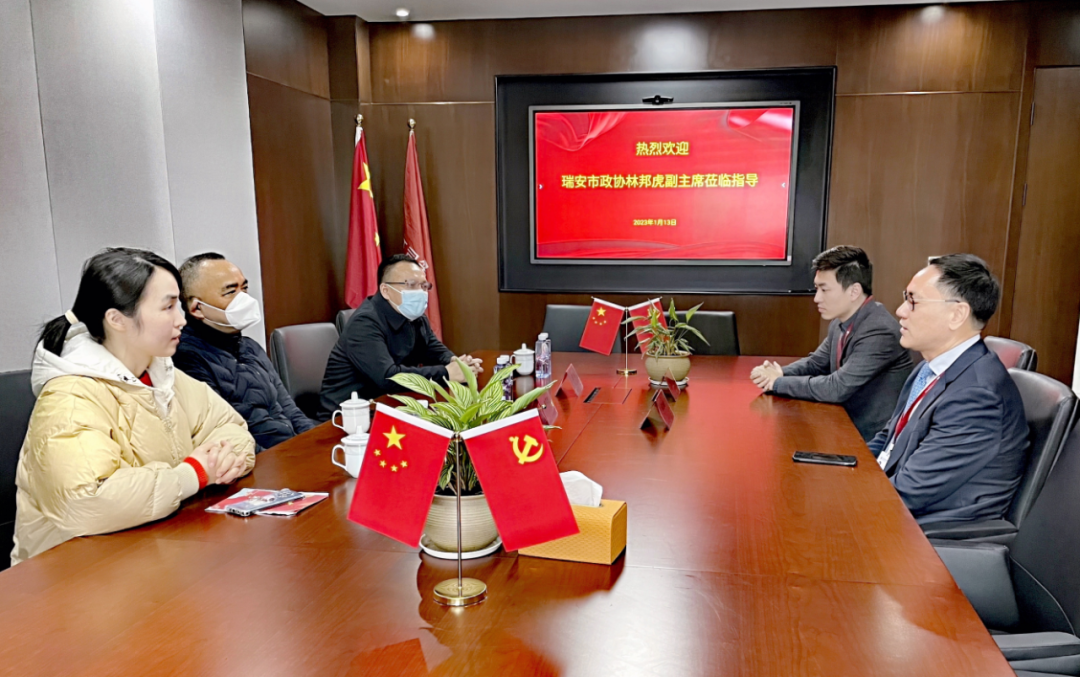 2023年1月13日,瑞安市政协副主席林邦虎一行莅临司策律所,走访看望司策所管理合伙人、市政协委员方志威律师。司策所主任陈旭峰律师代表事务所接待并介绍了情况,市政协委员工委主任陈伟东、市政协机关工作人员池新新陪同走访。