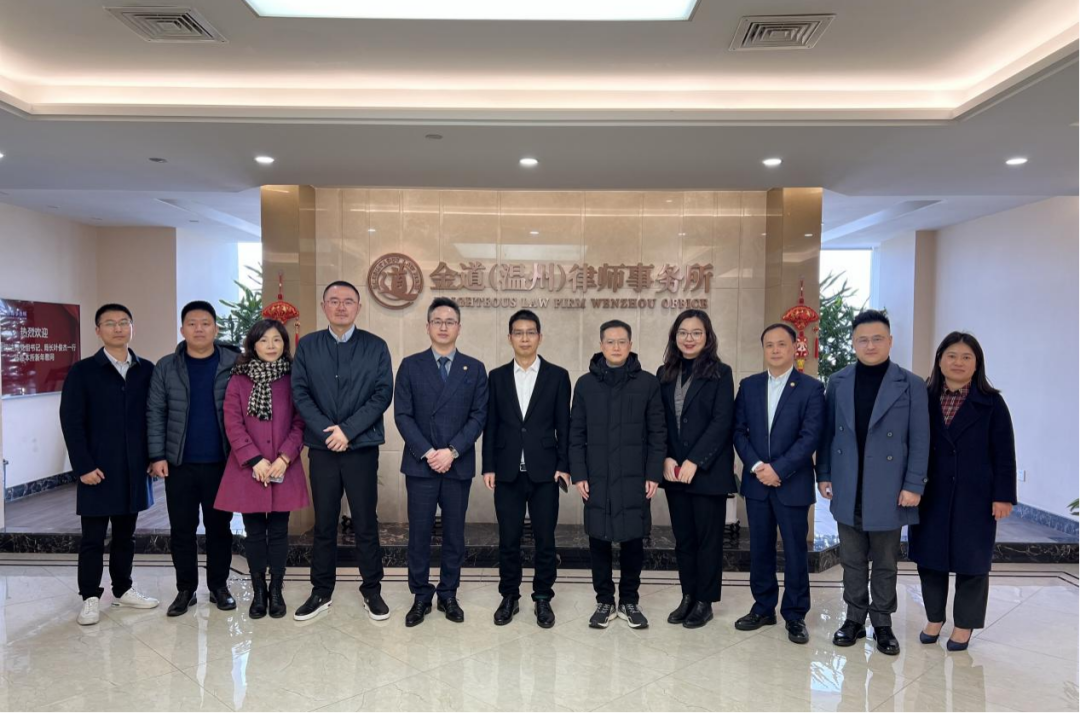 2023年2月6日上午,在元宵佳节之际,鹿城区司法局党组书记、局长叶俊杰携副局长周密等一行莅临金道温州分所调研指导工作,同时向大家致以节日的问候。金道温州分所主任曾竞孝、党支部书记肖立峰、执行主任王海程及律师戴莎莎、包建海、朱磊、李丽云等热情接待了叶局长一行。