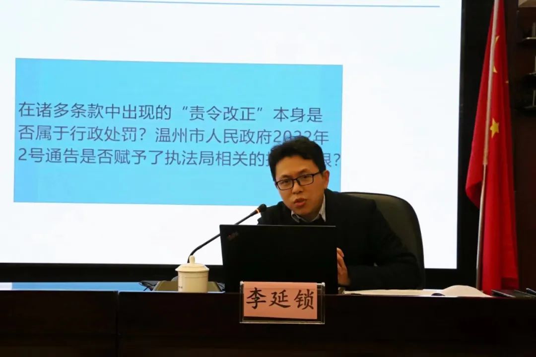 近日,震瓯所李延锁律师应鹿城区综合行政执法局邀请,为综合行政执法部门和住建部门开展了《招标投标行政处罚实务》、《建工领域转包、违法分包的认定》两场专题讲座。