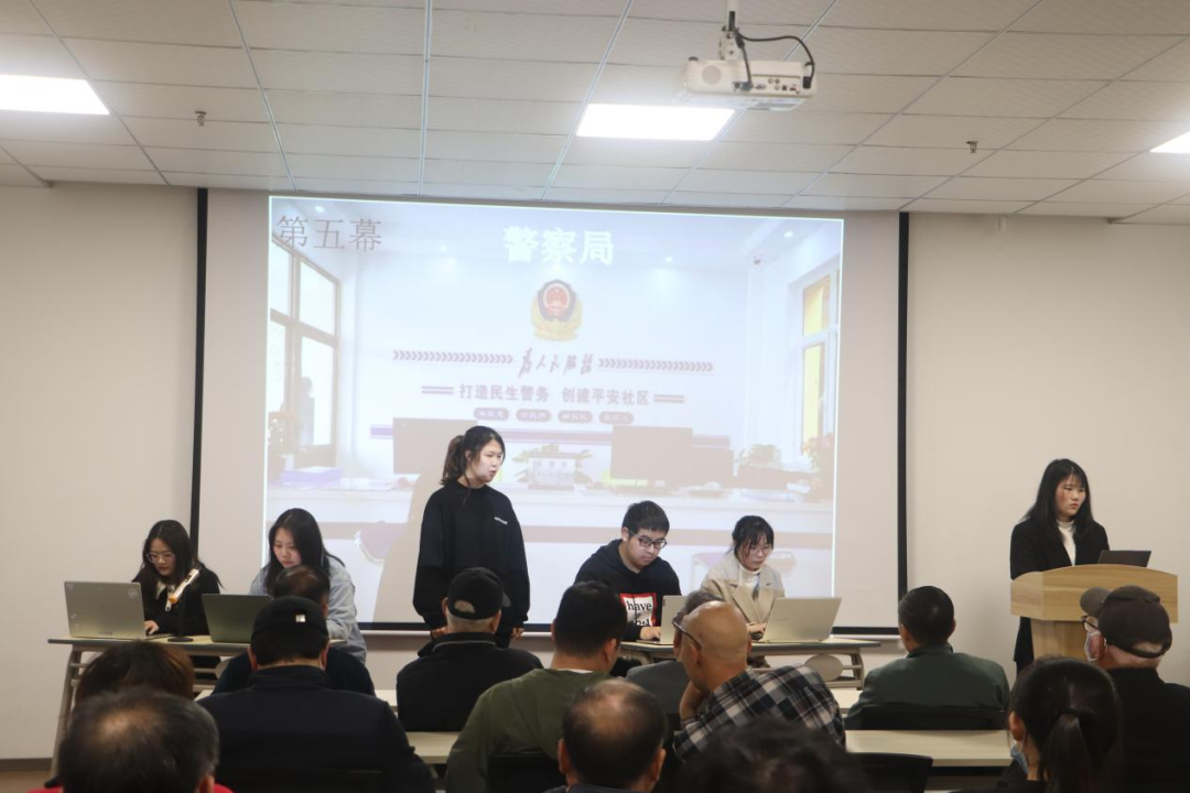 本次活动中,在光正大律所牵头组织下,由温州理工学院法学院学生为社区居民带来生动有趣的普法情景剧演出,情景剧的内容主要围绕消费者权益保护、反诈骗两大主题开展。活动中,学生们通过生动形象的演绎将贪小便宜的受骗者、狡猾的诈骗分子等角色刻画在台下群众的心里,各种角色的幽默台词引得台下群众捧腹大笑,学生们的表演也吸引来许多路过居民活动中心办事的群众驻足观看,活动现场更是欢笑一片、热闹非凡。