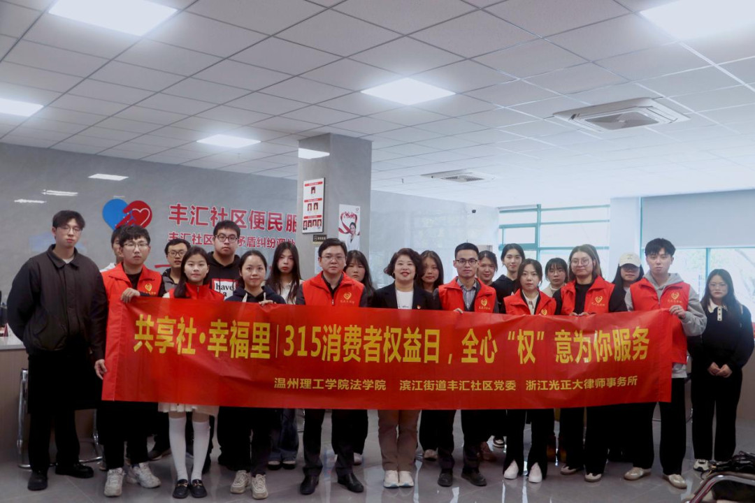 2023年3月15日,浙江光正大律师事务所联合温州理工学院法学院,在滨江街道丰汇社区开展【3•15消费者权益日,全心“权”意为你服务】社区普法活动。本次活动由浙江光正大律师事务所党支部主办、律所网络信息与数字化服务中心、财富管理与资产处置中心承办、温州法学会共同富裕与法治建设研究会协办。