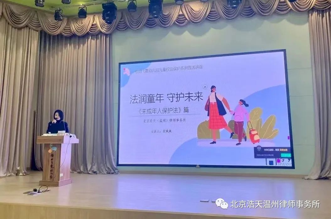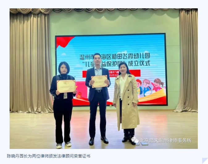 北京浩天(温州)律师事务所自成立以来,一直非常关注未成年人权益保护相关工作。浩天温州分所将携手瓯海区梧田飞霞幼儿园,继续加大力度,以多种形式开展未成年人权益保护活动,共同助力温州市儿童友好城市建设,致力为祖国花朵筑造法律安全屏障。