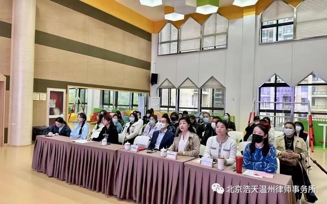 2023年3月23日下午,北京浩天(温州)律师事务所黄建明律师、范飒飒律师应邀参加瓯海区梧田飞霞幼儿园举办的“儿童权益保护团”成立仪式,并为现场的教职工、家长代表开展《法润童年 守护未来》系列儿童普法讲座。