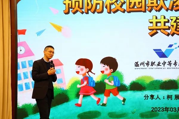2023年3月27日,我所副主任柯展律师受邀为温州市职业中等专业学校开展“预防校园欺凌,共建平安校园”专题普法讲座,全校四千余名师生通过现场及线上直播同时观看了此次普法讲座。