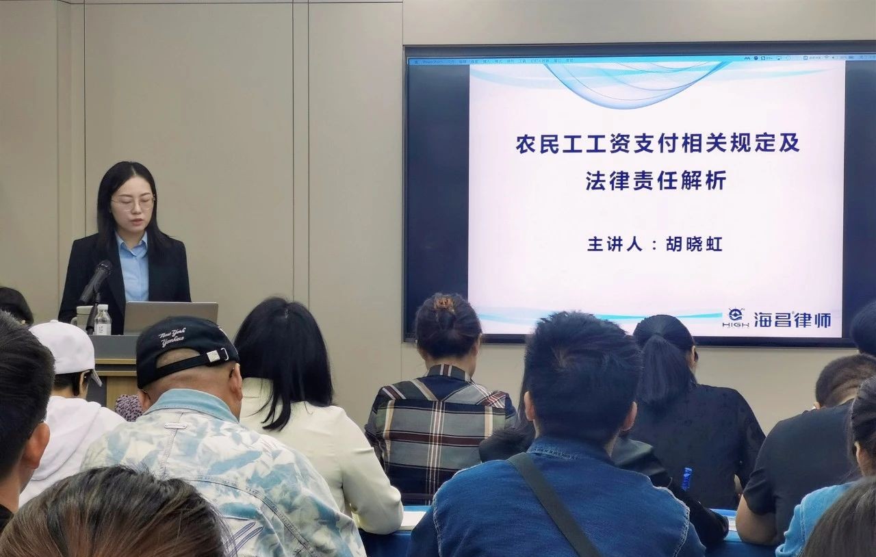 培训活动在位于深蓝国际大厦九楼的“海昌律师之家”多功能厅举办。胡晓虹律师先以《农民工工资支付相关规定及法律责任解析》展开讲座,对《保障农民工工资支付条例》进行政策解读,分析了农民工工资拖欠下建设单位、施工总承包单位、分包单位的法律责任,并对各单位农民工工资管理提出相关法律建议。之后,严凌振律师为与会人员做《当前建筑施工企业法律风险分析》的法律讲座,从施工企业面临的法律风险切入,深入浅出地介绍了承包人常见的工程索赔与反索赔,进一步增强了各施工单位的法律风险防控意识。