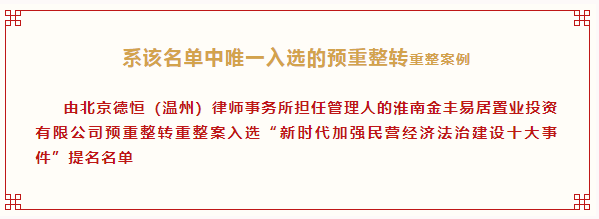 “法治是最好的营商环境”,金丰易居公司预重整转重整案的成功,充分展现了政府、法院与管理人在破产案件中的有效分工和协作之成功,极大促进了当地相关产业的发展,推动地方经济建设和城市发展,维护了社会的和谐与稳定。是运用法治手段优化营商环境、挽救困境企业、提振地方经济的典范!