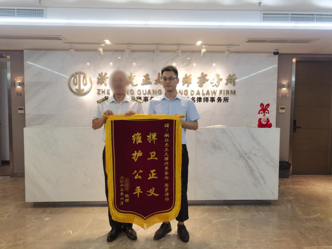 2023年6月21日,受援人赠予周梦律师“捍卫正义 维护公平”的锦旗,表示感谢。