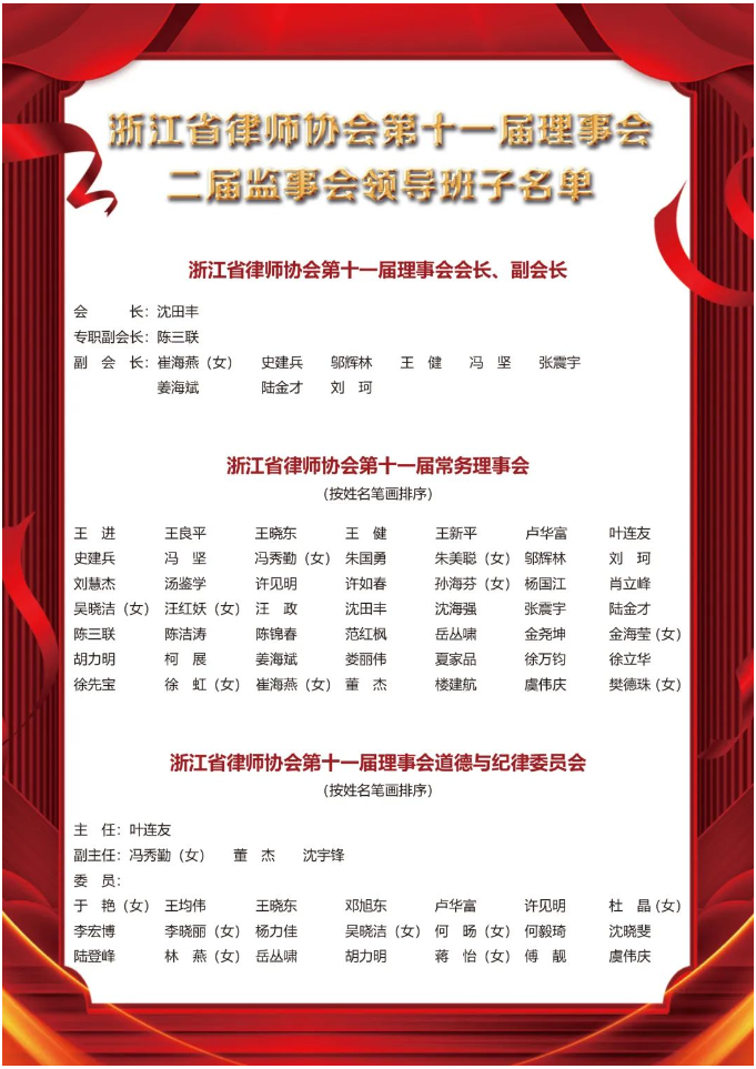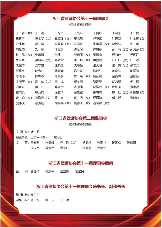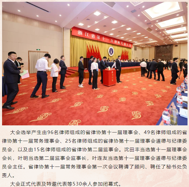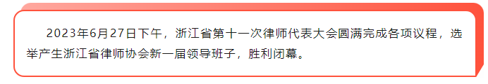浙江省第十一次律师代表大会胜利闭幕 选举产生浙江省律师协会新一届领导班子