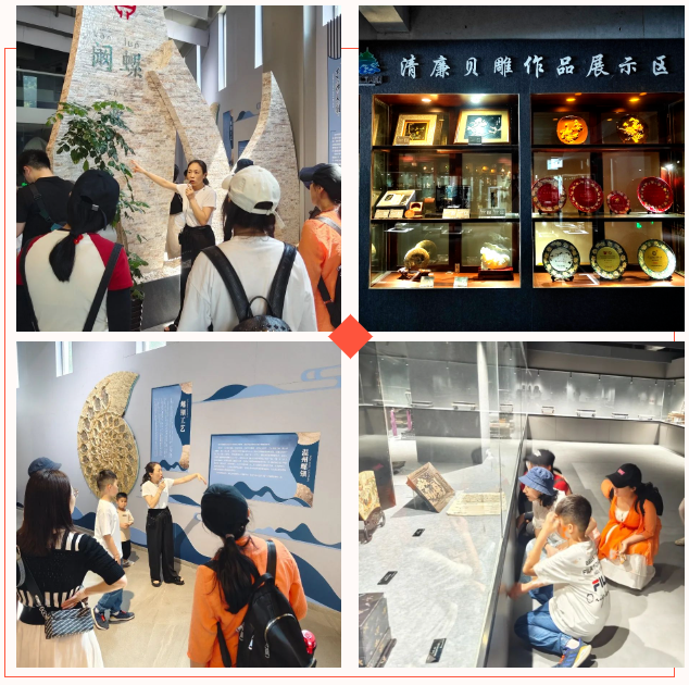 第二站,党员们来到了东海贝雕艺术博物馆。这里收集着1000多件来自宋元明清至民国的螺钿文物,是目前东南亚地区收集螺钿漆器文物数量最多品种最全的馆。走进馆内,一幅幅贝雕艺术品扑面而来,巧夺天工的贝雕技艺让人流连忘返。清廉主题的贝雕作品更是吸引了党员们驻足观赏,时刻警醒党员律师清廉执业,做好自身廉政建设。