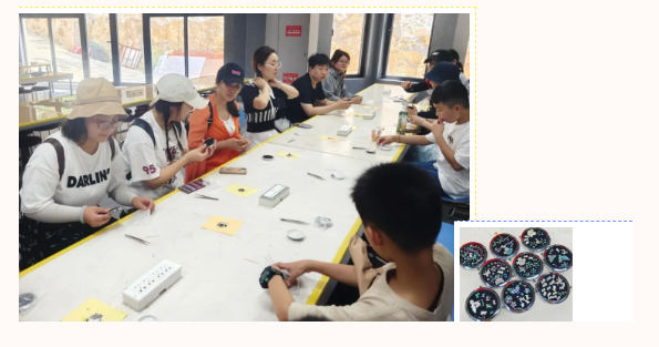 随后大家开展了螺钿化妆镜DIY活动。党员们亲手体验了这项非遗技艺,带着独一无二的作品满载而归。