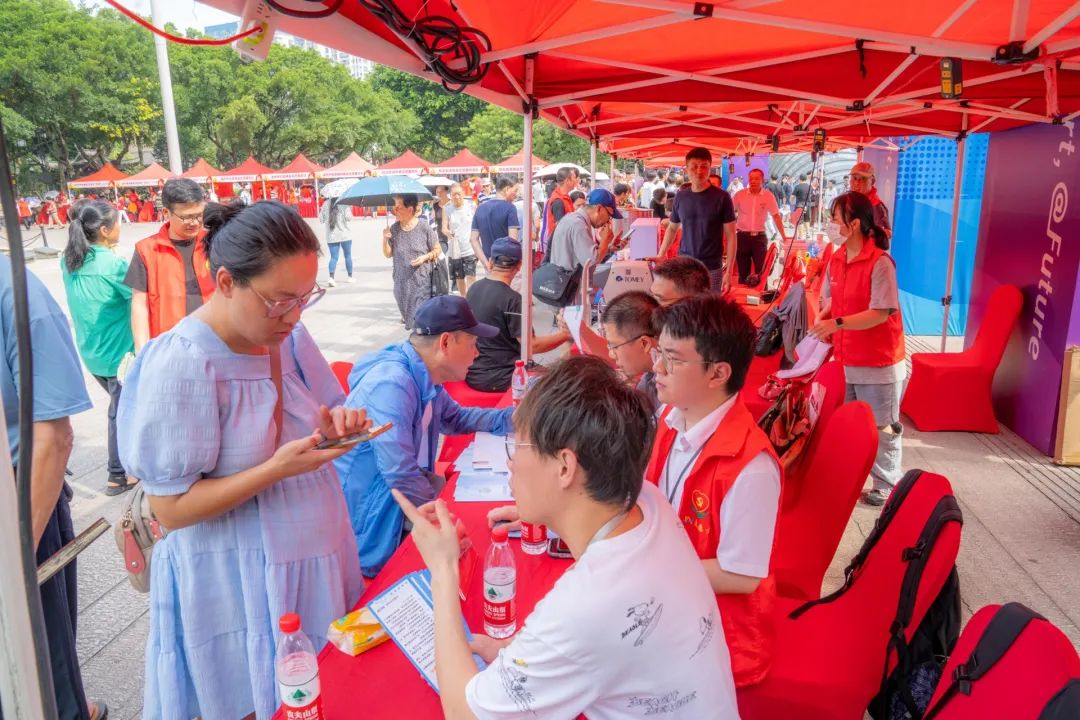 2023年7月20日,由温州市委两新工委、温州市委直属机关工委、温州市工商联、温州市鹿城区工商联联合主办的“学思想、迎亚运、当先锋、促践行”温州市工商联系统志愿服务活动在松台广场隆重举行。各温州市属协会商会志愿服务队踊跃参与,在现场开展家电维修、理疗按摩、心理健康咨询和法律咨询等便民惠民活动。