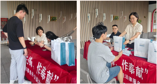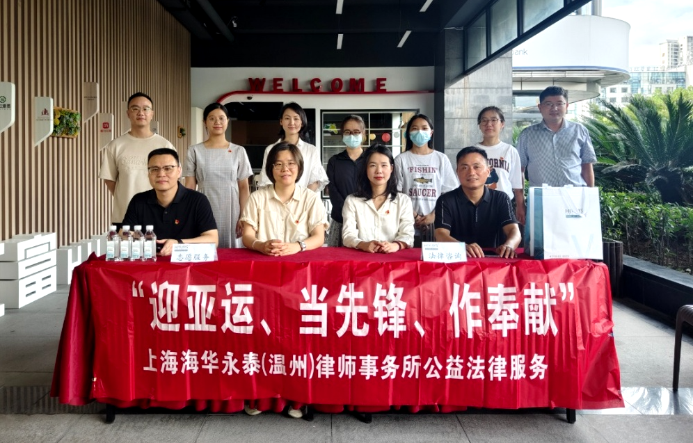 为发动党员律师助力迎亚运盛会三大提升行动,形成支持亚运、参与亚运、服务亚运的浓厚氛围,2023年8月4日海华永泰(温州)律师事务所党支部在汇富大厦瓯江红党群服务中心组织开展“迎亚运、当先锋、作奉献”公益法律服务活动,为汇富大厦内企业、员工及过往群众提供免费的法律咨询。