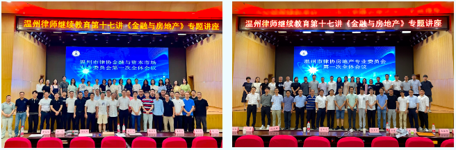 为提升温州律师金融与房地产领域理论水平和办理金融与房地产案件业务能力,2023年8月5日,由温州市律协金融与资本市场专业委员会和房地产专业委员会联合举办的“金融与房地产”专题讲座暨市律协金融与资本市场专业委员会、房地产专业委员会第一次全体会议在温州城市大学顺利召开。