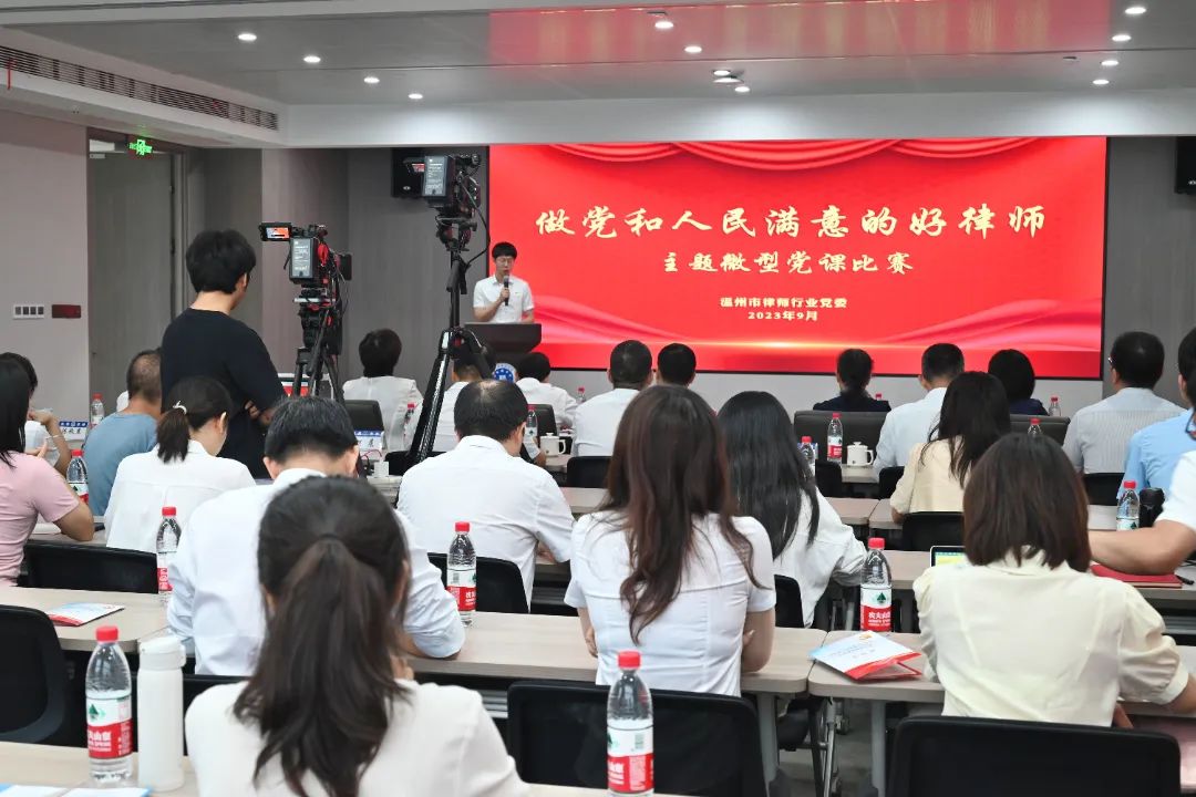 为深入学习党的二十大精神,积极响应司法部党组提出的“五点希望”,切实增强温州律师的时代责任感和使命感,9月22日,市律师行业党委成功举办“做党和人民满意的好律师”主题微型党课比赛。市司法局党委委员、副局长,市律师行业党委书记林向光;市委宣传部宣传教育处处长叶剑锋;市司法局机关党委专职副书记吴中希;市两新党务工作者协会秘书长吴红;温州市新闻传媒中心主任编辑、市朗诵演讲艺术学会常务副会长许溟嵘;浙江震瓯律师事务所合伙人、鹿城区朗诵演讲艺术学会常务副会长殷欧艳等出席活动。温州市律师行业党委委员、市律协会长班子成员及部分律师代表现场观摩比赛。