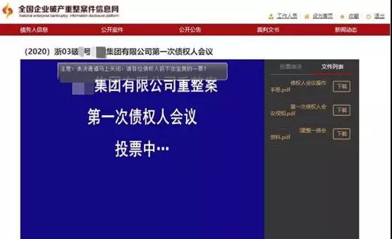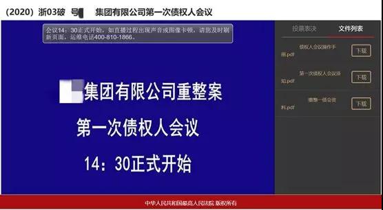 会中,管理人通过平台软件与已实名认证的债权人进行线上“面对面”交流,将会议资料、各项表决报告等文件上传至平台,债权人实时查看、发表意见并对各项议案进行在线表决,形成有效决议。