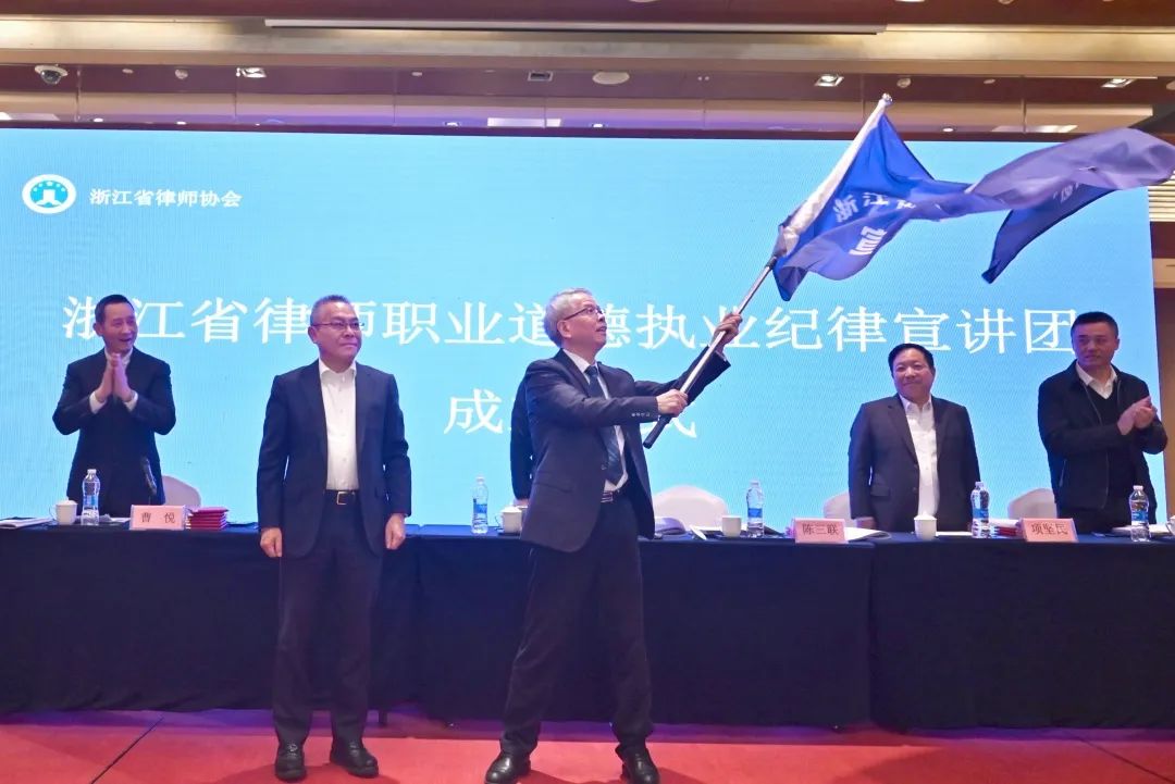 在培训班开幕式上,还举行了浙江省律师职业道德执业纪律宣讲团成立仪式,24位宣讲团成员接受聘任。宣讲团成员张康康、沈晓斐、车金梦、何旸等对宣讲课程作了试讲。