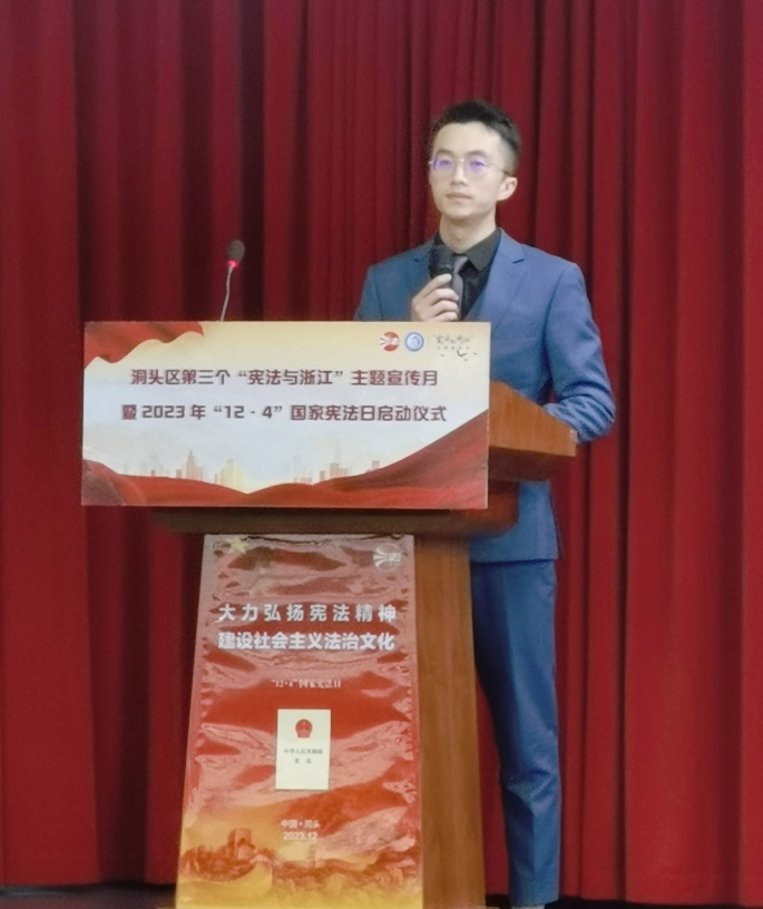 启动仪式上,为2023年度“十佳普法人物”颁发奖杯和证书。同时,浙江泽商(洞头)律师事务所南洋律师作为“十佳普法人物”代表进行发言。