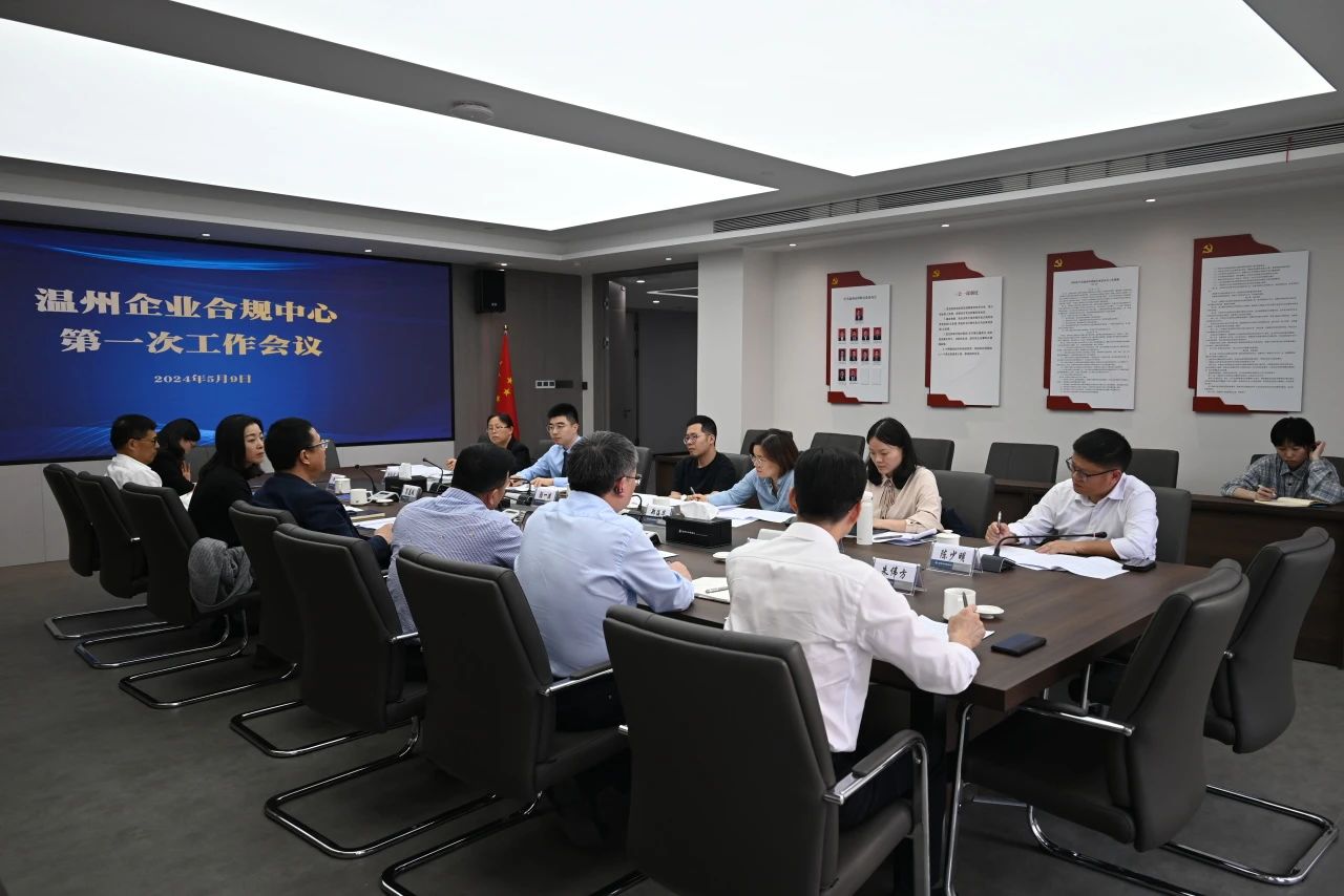 2024年5月9日下午,温州企业合规中心第一次工作会议议程在市律师协会召开。温州市律师协会会长金疆、副会长严凌振,以及企业合规中心工作专班成员参加会议。