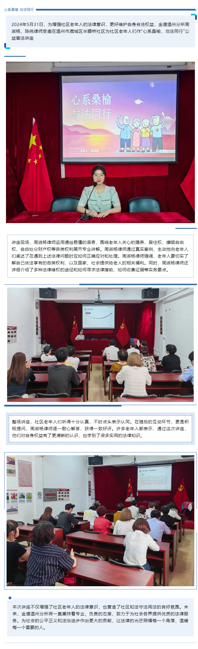 “心系桑榆 与法同行”——金道温州分所赴半腰桥社区开展公益讲座